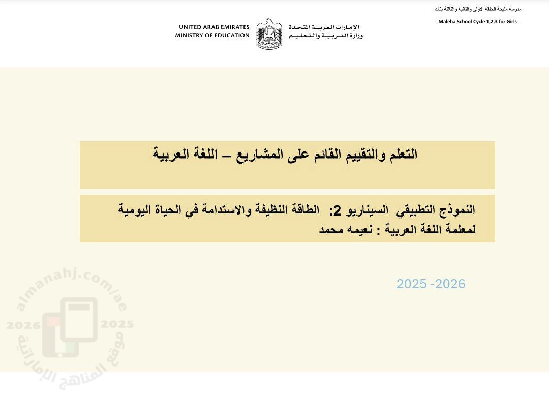 تم إيجاد الملف: تحضير النموذج التطبيقي للسيناريو الثاني: الطاقة النظيفة والاستدامة - التعلم والتقييم القائم على المشاريع (الأسبوع الثالث)