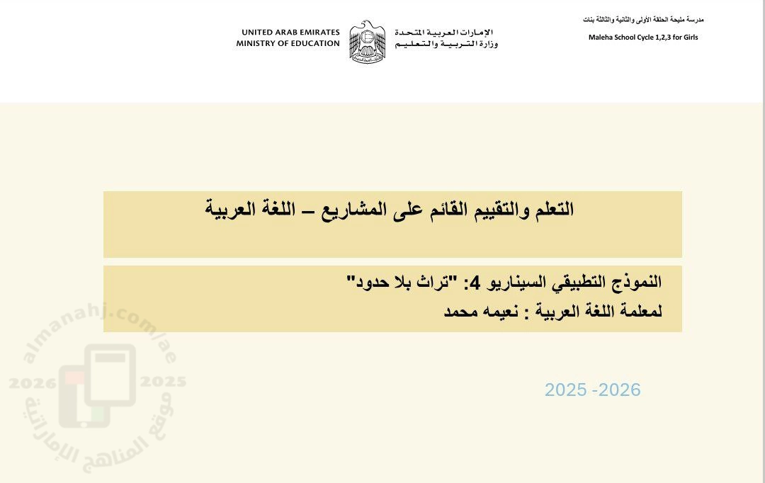 تم إيجاد الملف: تحضير النموذج التطبيقي للسيناريو الرابع: تراث بلا حدود - التعلم والتقييم القائم على المشاريع (الأسبوع الثالث)