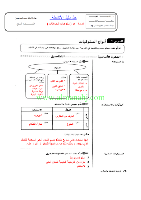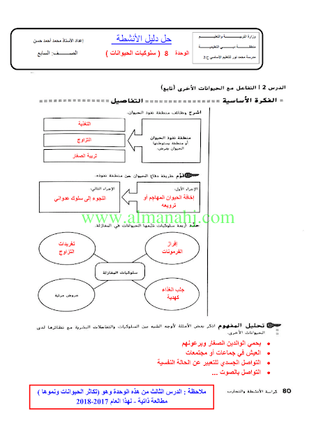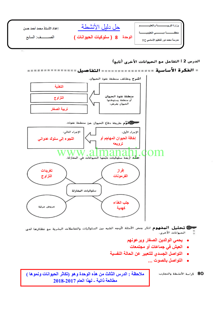 معلومات الملف: الصف السابع, الفصل الثاني, علوم, 2017-2018, سلوكيات الحيوانات | |||