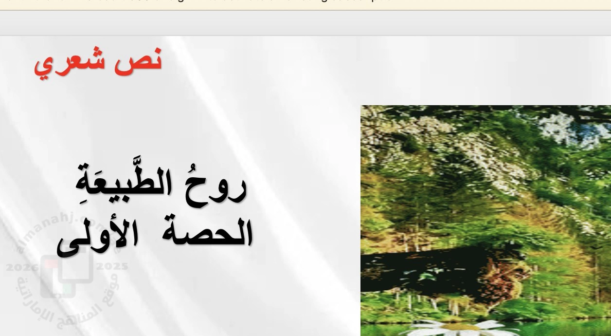 8. لغة عربية, الفصل الثاني, 2025-2026, عرض بوربوينت نص شعري درس روح الطبيعة