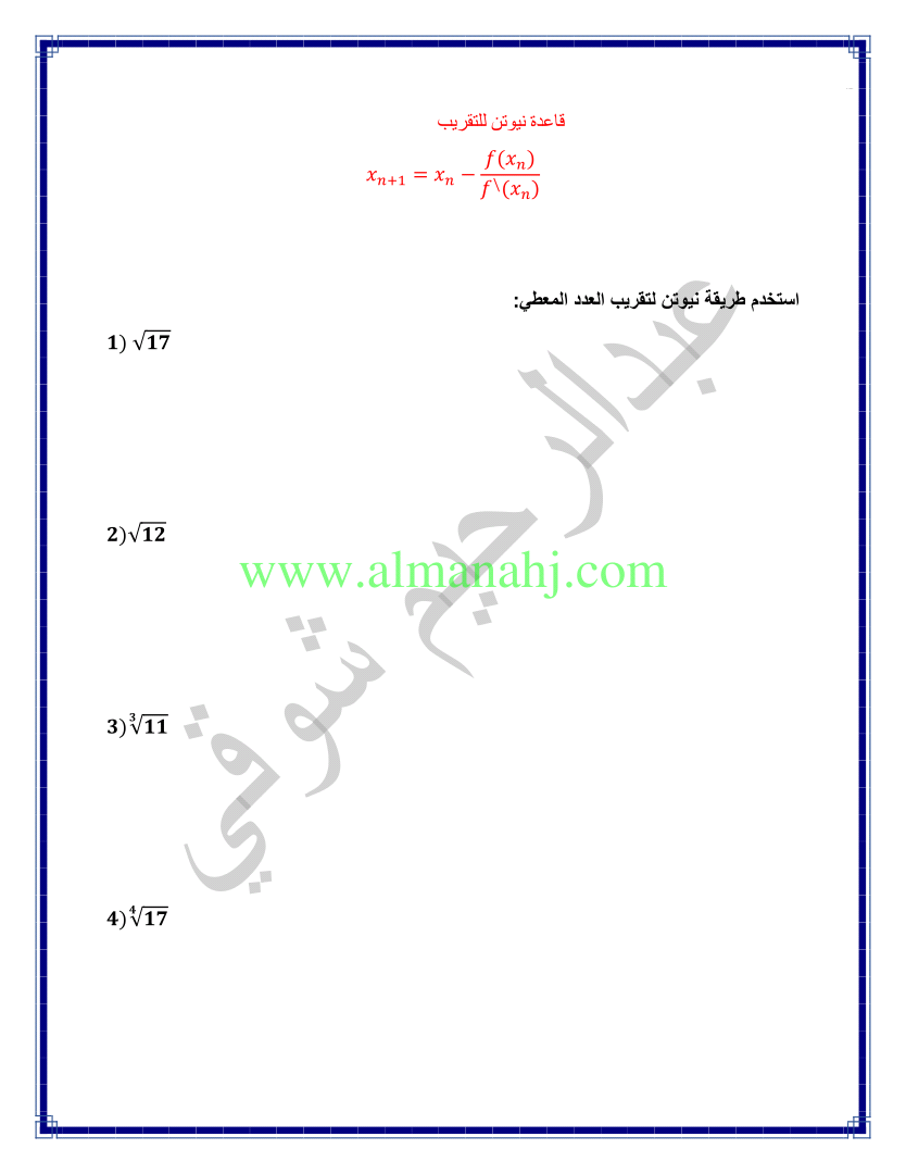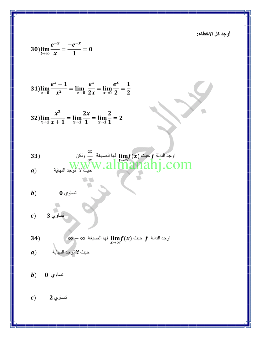 | السابق: رياضيات برنامج دعم طلاب ثاني | الملف الحالي: 3812 | التالي: مراجعة الدرس السابع Derivatives of Exponential and Logarithmic Functions مشتقة الدوال الأسية والدوال اللوغاريتمية من الوحدة الثالثة (اختبر نفسك 11) | |