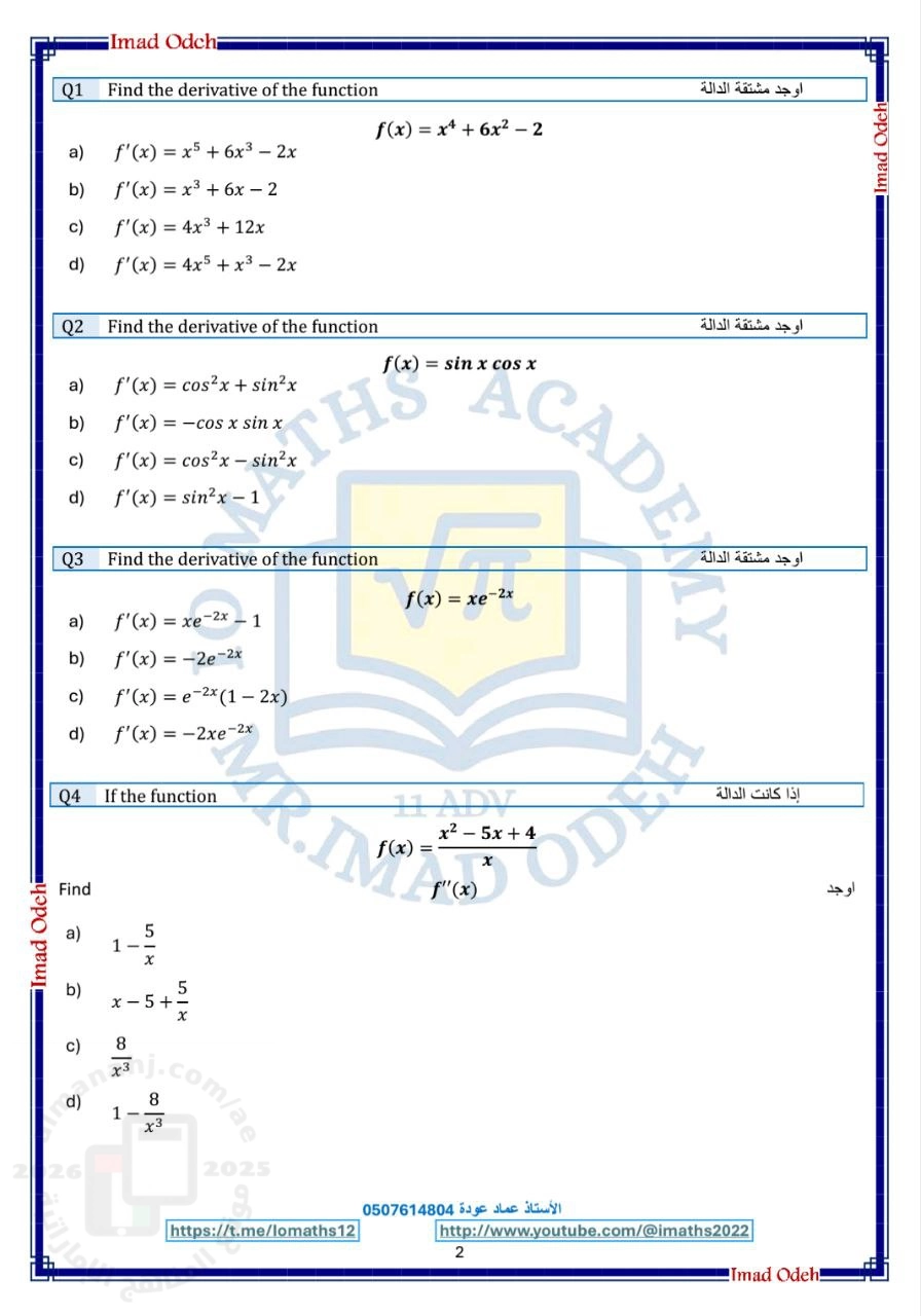 معلومات الملف: مراجعة الدرس الثالث وفق منهج بريدج Bridge و منهج ريفيل Reveal according to the previous exam مراجعة الدرس الثالث ( القيم القصوى و الصغرى ) | ||