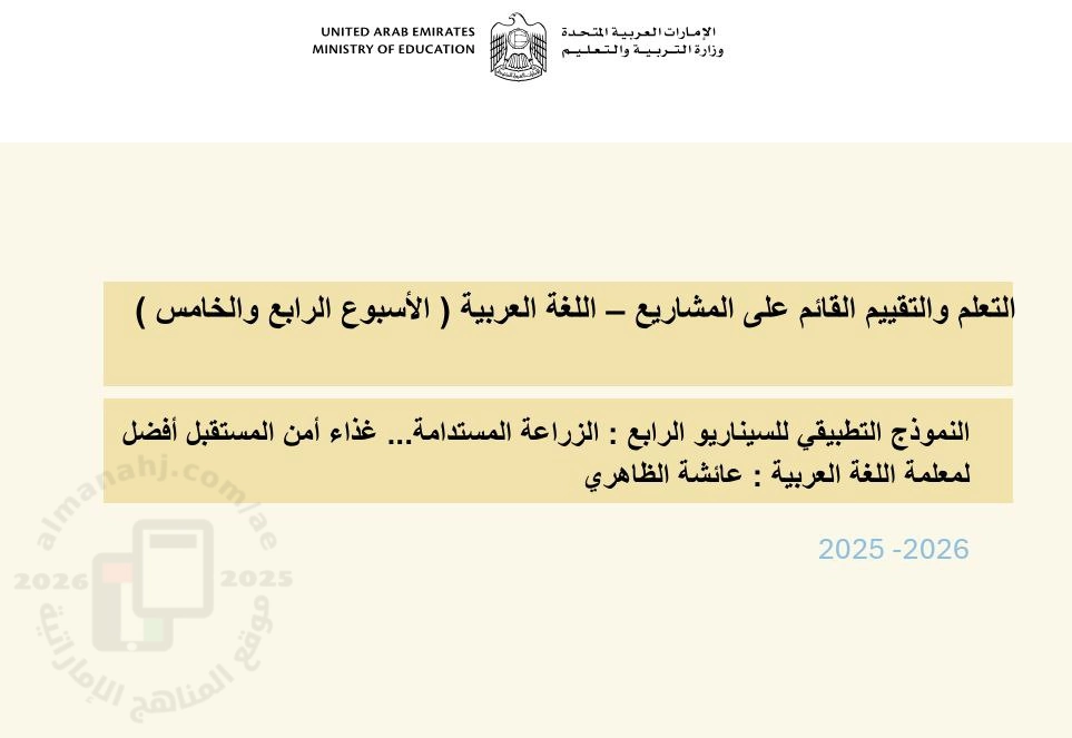 | النمذجة واختبار الحل النموذج التطبيقي للسيناريو الرابع: الزراعة المستدامة غذاء أمن المستقبل أفضل (الأسبوع الرابع والخامس) - إعداد: عائشة الظاهري | ||