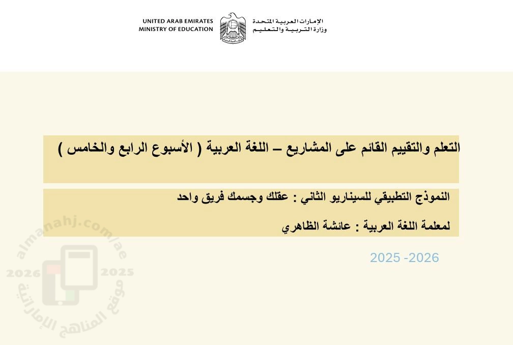 | النمذجة واختبار الحل النموذج التطبيقي للسيناريو الثاني: عقلك وجسمك فريق واحد (الأسبوع الرابع والخامس) - إعداد: عائشة الظاهري | ||