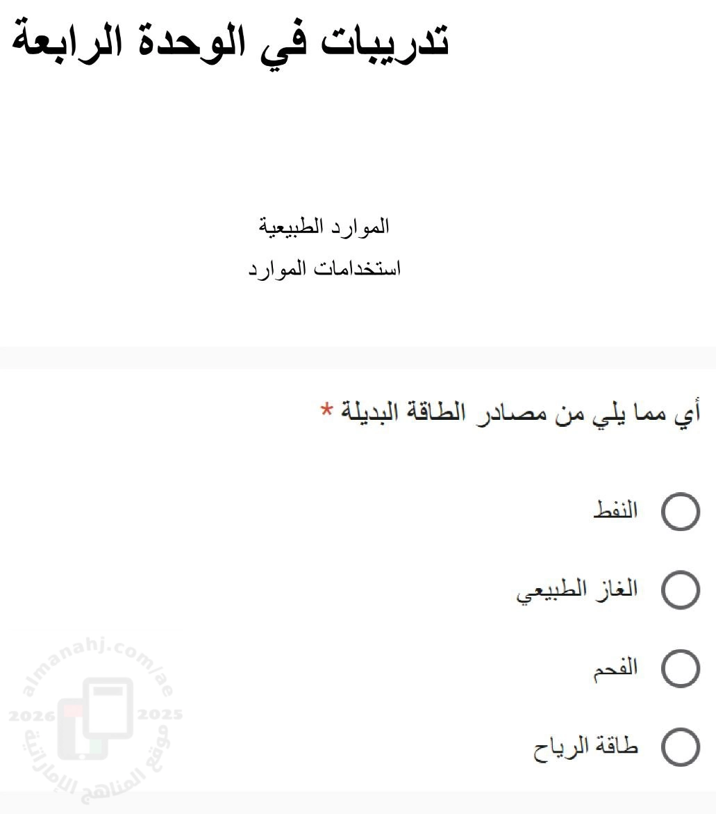 معلومات الملف: تدريبات الوحدة الرابعة : الموارد الطبيعية , استخدامات الموارد للاختبار الأول بدون الحل | ||