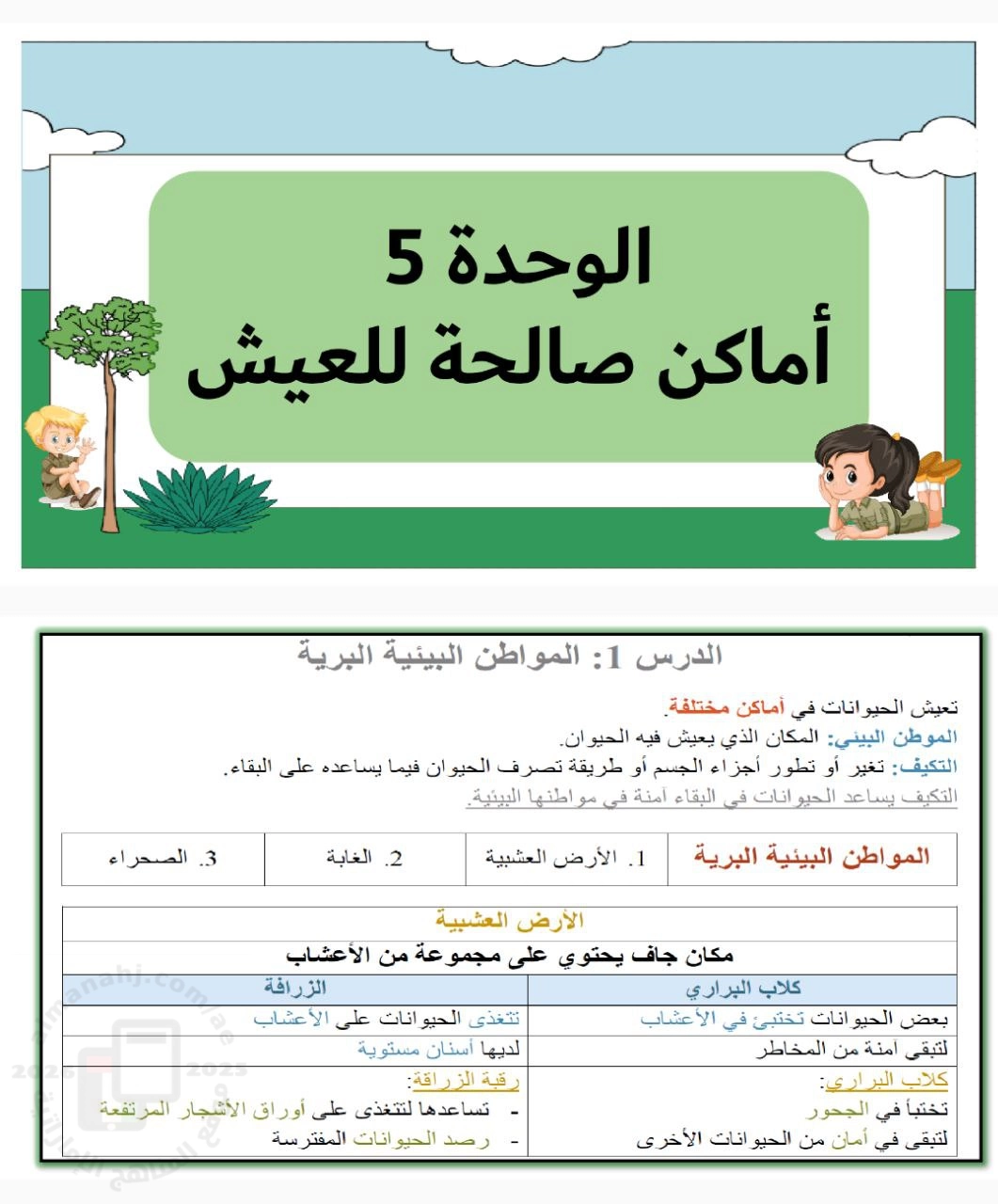 تم إيجاد الملف: مذكرة الوحدة الخامسة أماكن صالحة للعيش