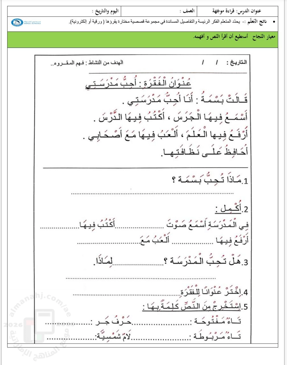 تم إيجاد الملف: نموذج قراءة موجهة نشاط فهم المقروء