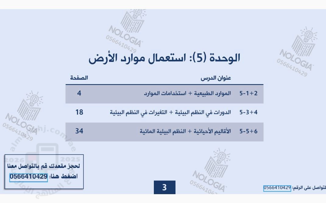 | رابط تحميل وعرض ( مذكرة الوحدة الخامسة استعمال موارد الأرض ) | |||