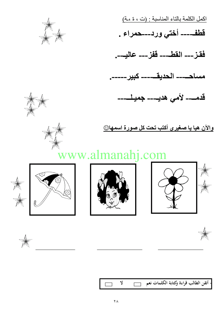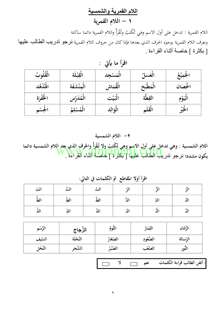 مذكرة الطالب العلاجية في مادة اللغة العربية للصفين الثاني والثالث | |||