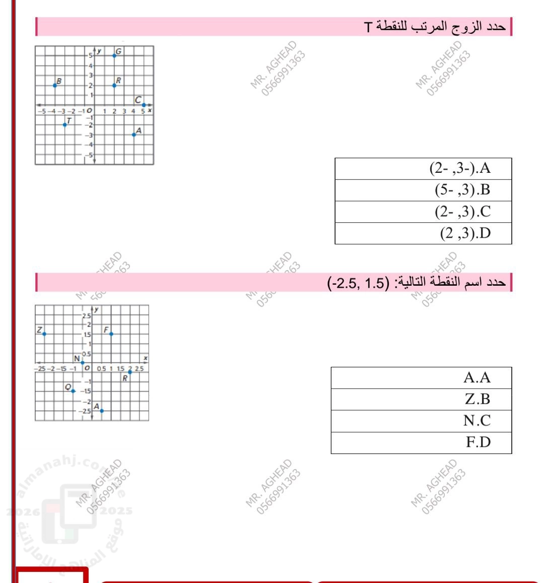 | أسئلة اختبار الوحدة الخامسة الأعداد الصحيحة والمستوى الإحداثي - إعداد: Aghead | ||