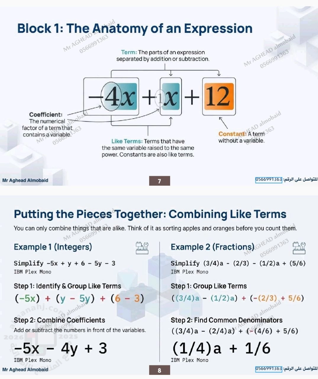 3. الصف السابع, رياضيات, مذكرة شاملة وحدات الفصل منهج بريدج