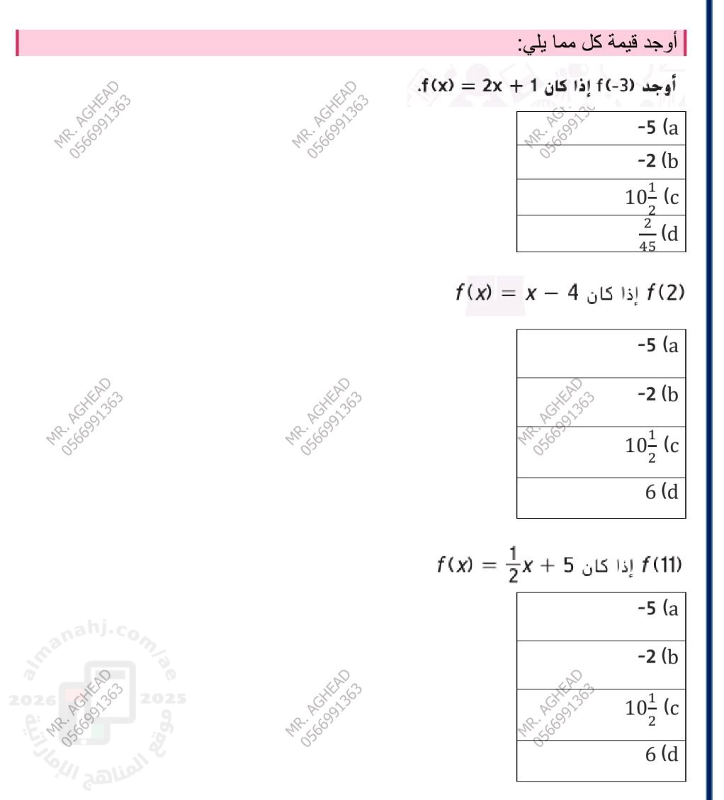 معلومات الملف: نموذج أسئلة هيكل الاختبار التكويني الأول منهج بريدج Bridge بدون الحل و يتضمن أسئلة موضوعية و أسئلة كتابية حول الدروس التالية : حساب قيمة الدالة تحديد المتغير المستقل و المتغير التابع تعيين احداثبات نقطة تحديد العلافة التي عن دالة في رسم | ||