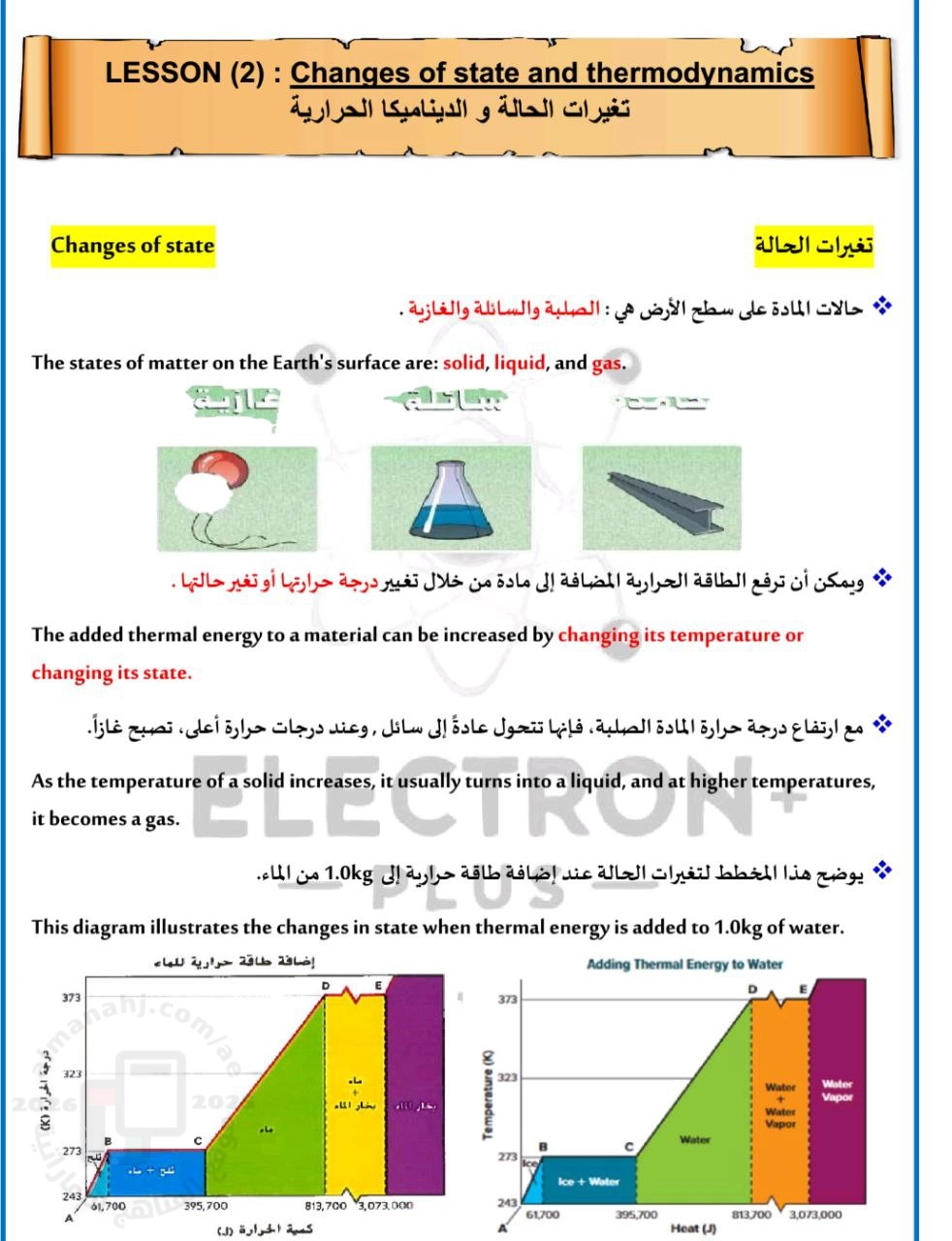 تم إيجاد الملف: مراجعة الدرس الثاني Changes of state and thermodynamics تغيرات الحالة والديناميكا الحرارية