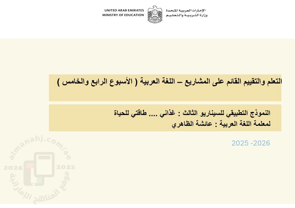 | تطوير نموذج الحل واختباره وتحسينه النموذج التطبيقي للسيناريو الثالث: غذائي طاقتي للحياة (الأسبوع الرابع و الخامس) - إعداد: عائشة الظاهري | ||
