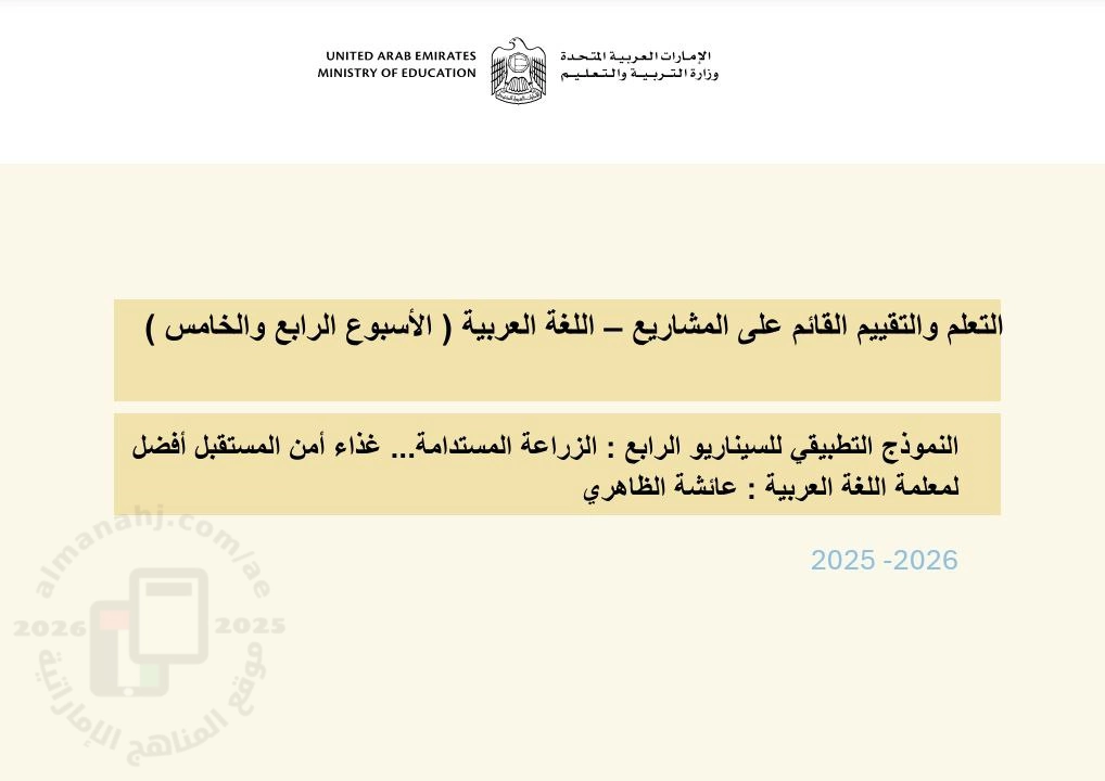 | تطوير نموذج الحل واختباره وتحسينه النموذج التطبيقي للسيناريو الرابع: الزراعة المستدامة غذاء أمن المستقبل أفضل (الأسبوع الرابع والخامس) - إعداد: عائشة الظاهري | ||
