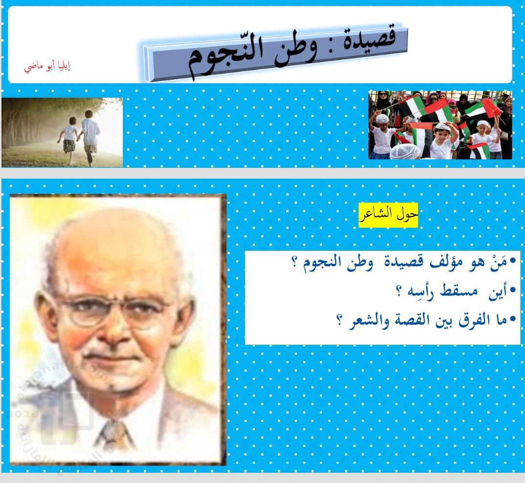 تم إيجاد الملف: عرض بوربوينت شرح وتدرببات قصيدة وطن النجوم