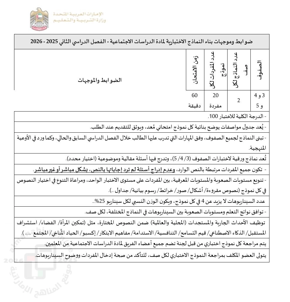 معلومات الملف: ضوابط وموجهات بناء النماذج الاختبارية لمادة الدراسات الاجتماعية