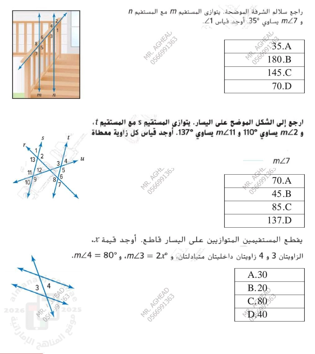 | أسئلة اختبار الوحدة الخامسة المثلثات ونظرية فيثاغورس - إعداد: Aghead | ||