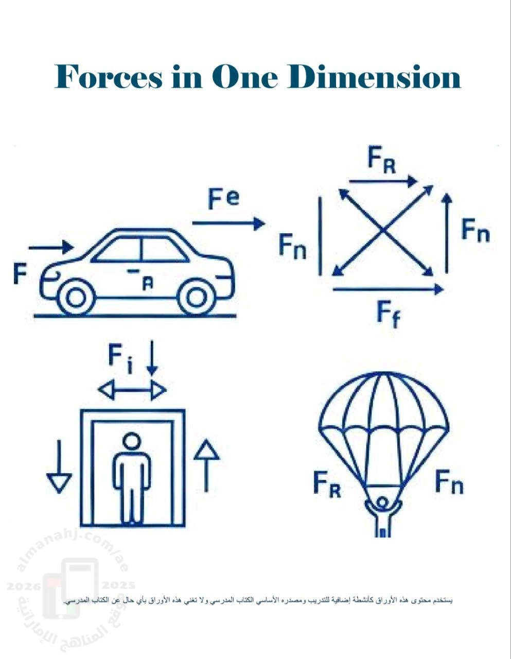 2. الصف التاسع المتقدم, فيزياء, أوراق عمل Forces in one dimension منهج انسباير