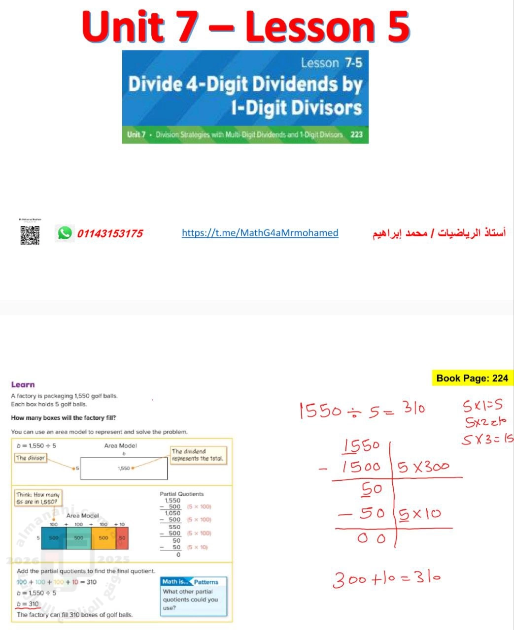 حل أوراق عمل الدرس الخامس Divide 4-digit Dividends by 1-Digit Divisors من الوحدة السابعة منهج ريفيل - إعداد: Mohamed Ibrahem