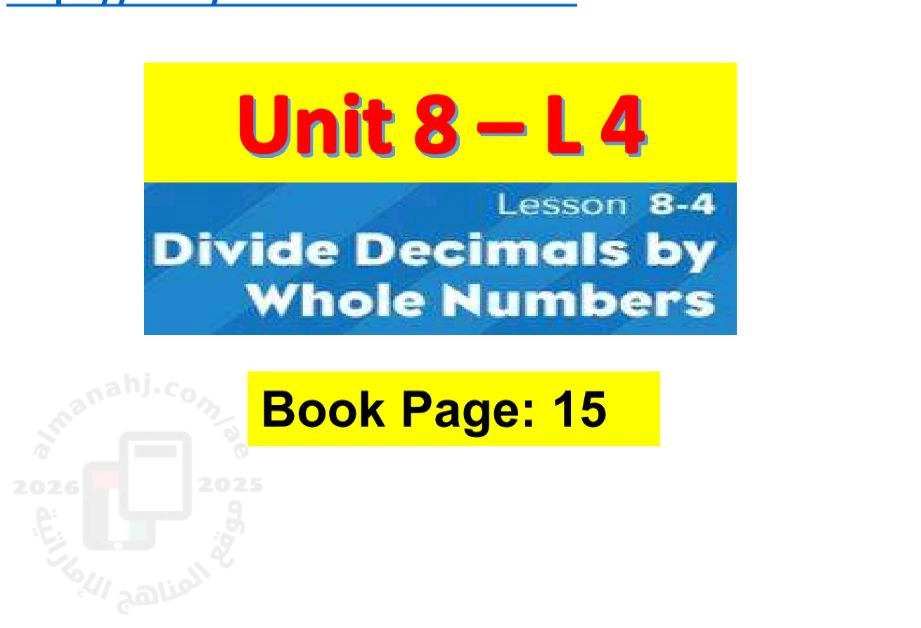 أوراق عمل الدرس الرابع Divide Decimals by Whole Numbers  من الوحدة الثامنة منهج ريفيل, Mohamed Ibrahem, الصف الخامس, رياضيات, الفصل الثاني, 2025-2026, منهج انجليزي - المناهج الإماراتية