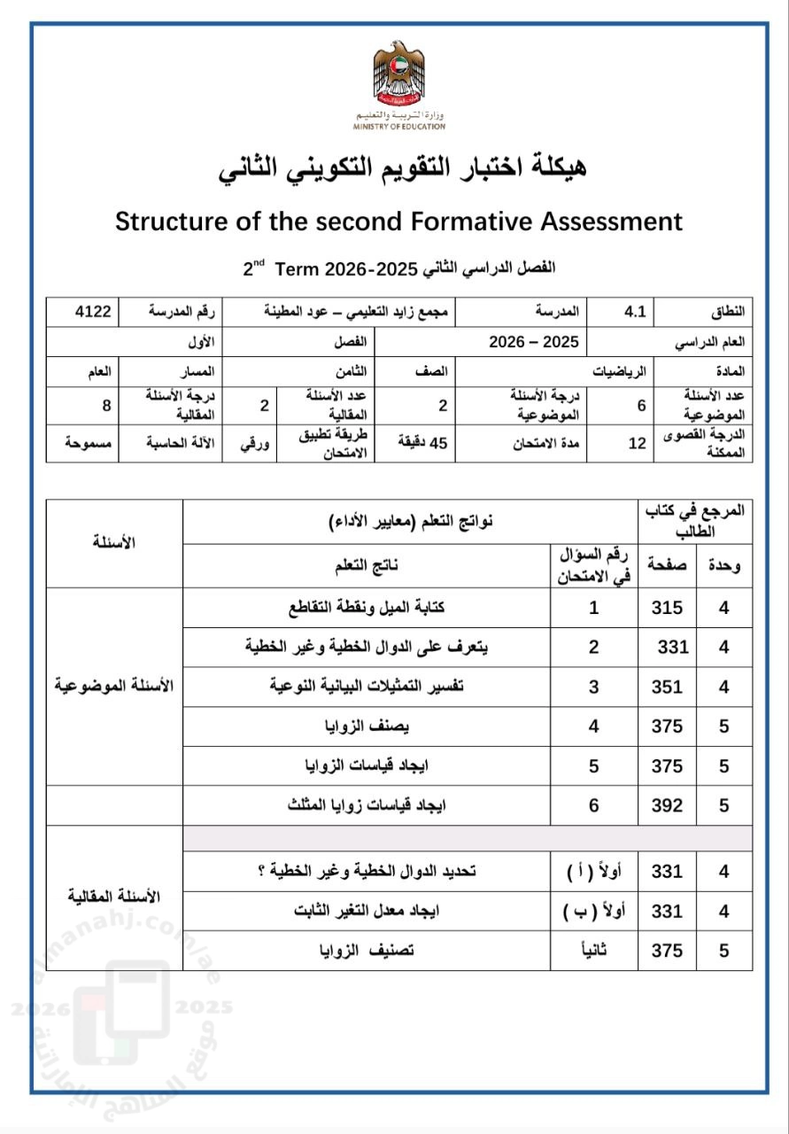 | هيكلة اختبار التقويم التكويني الثاني - إعداد: مجمع زايد التعليمي | ||
