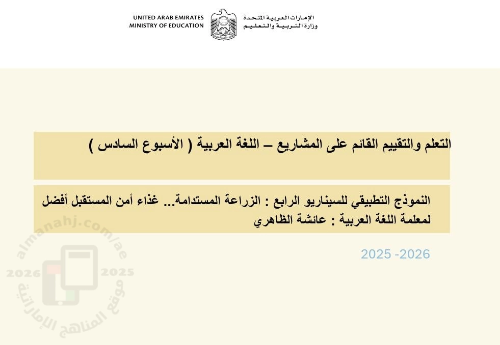 معلومات الملف: عرض الخل النهائي النموذج التطبيقي للسيناريو الرابع: الزراعة المستدامة ... نواتج التعلم : يحدد الفكر الرئيسة للنص بعد تحليله المعلومات الصريحة والضمنية، مستشهدا بمصادر متعددة من الأدلة يميز بين الحقائق التي تعتمد الحجج والبراهين وبين الآراء التي قد تبدو ذاتية في النص، مقيما مدى دقتها ، مقترحا بدائل لآراء لم تعجبه في النص يصمم خريطة مفاهيمية يفرغ فيها ما قرأه من معلومات متشعبة، مضيفا إليها معلومات أخرى قرأها في الشبكة يحلل المادة المسموعة كالمقال التربوي، أو المقال الاجتماعي محددا العلاقات بين أجزاء النص مفاضلا بين الآراء المطروحة. يكتب تقريرا بحثيا عن فكرة أو قضية مهمة، ويطرح سؤالا مركزيا واحدا مؤسسا لفكرة أساسية مركزية مطورا الفكرة بالأدلة والأمثلة مضمنا بحله قائمة المصادر والمراجع يحدد الاقتباسات والبيانات الملائمة ليدمجها في أعماله الكتابية ويوثق المعلومات والمراجع توثيقا صحيحا ملاحظة: سيظهر توظيف هذه النواتج في المراحل المناسبة على شكل أنشطة لغوية مدمجة في مهام المشروع (استماع – قراءة – كتابة – عرض شفهي – استخدام وسائط). | ||