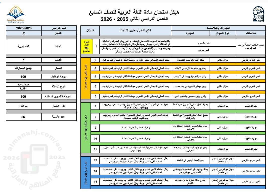 تم إيجاد الملف: هيكل الامتحان النهائي للفصل الدراسي الثاني