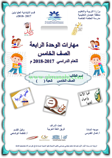 معلومات الملف: الصف الخامس, الفصل الثاني, لغة عربية, 2017-2018, مهارات الوحدة الرابعة | |||