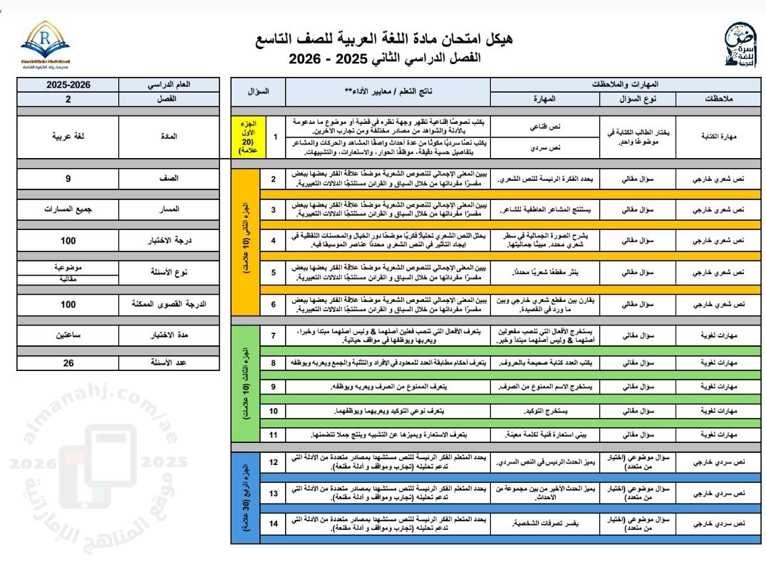 تم إيجاد الملف: هيكل الامتحان النهائي للفصل الدراسي الثاني