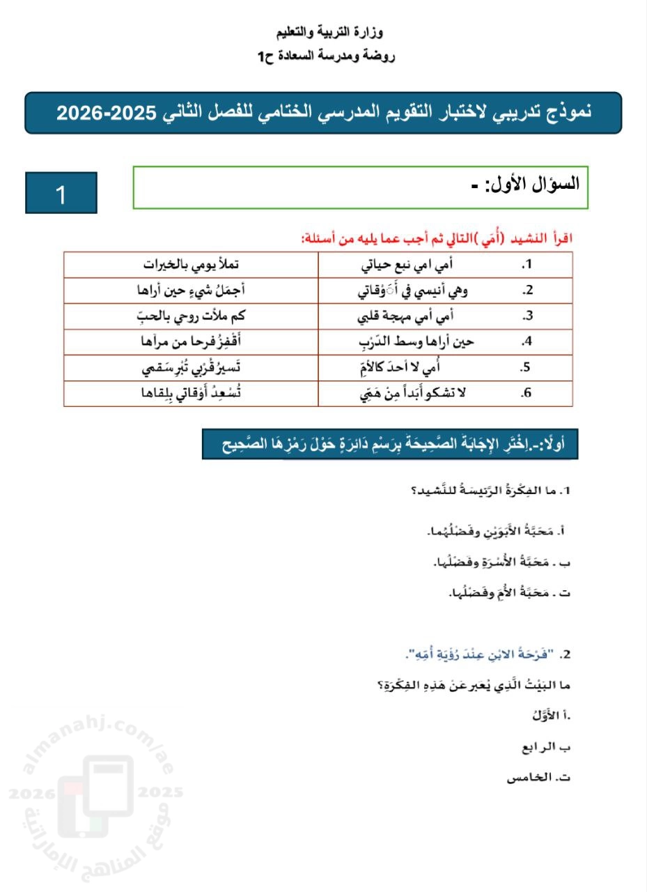 | أهلاً بكم جميعاً طلاباً ومدرسين وأهالي طلبة ومهتمين، في قسم دولة الإمارات ، نحن الآن في الفصل الثاني من العام الدراسي 2025/2026 وتاريخ اليوم 2026/02/07 م | |