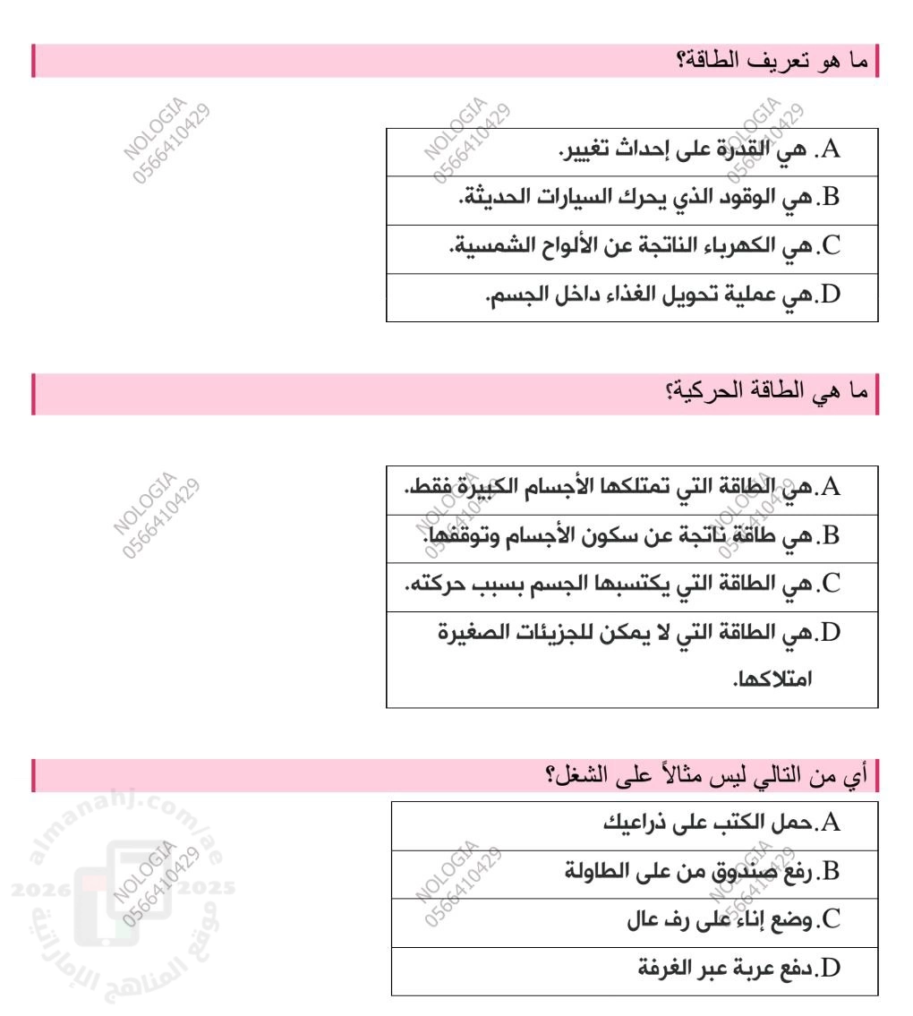 تم إيجاد الملف: أسئلة اختبار الوحدة السادسة الطاقة