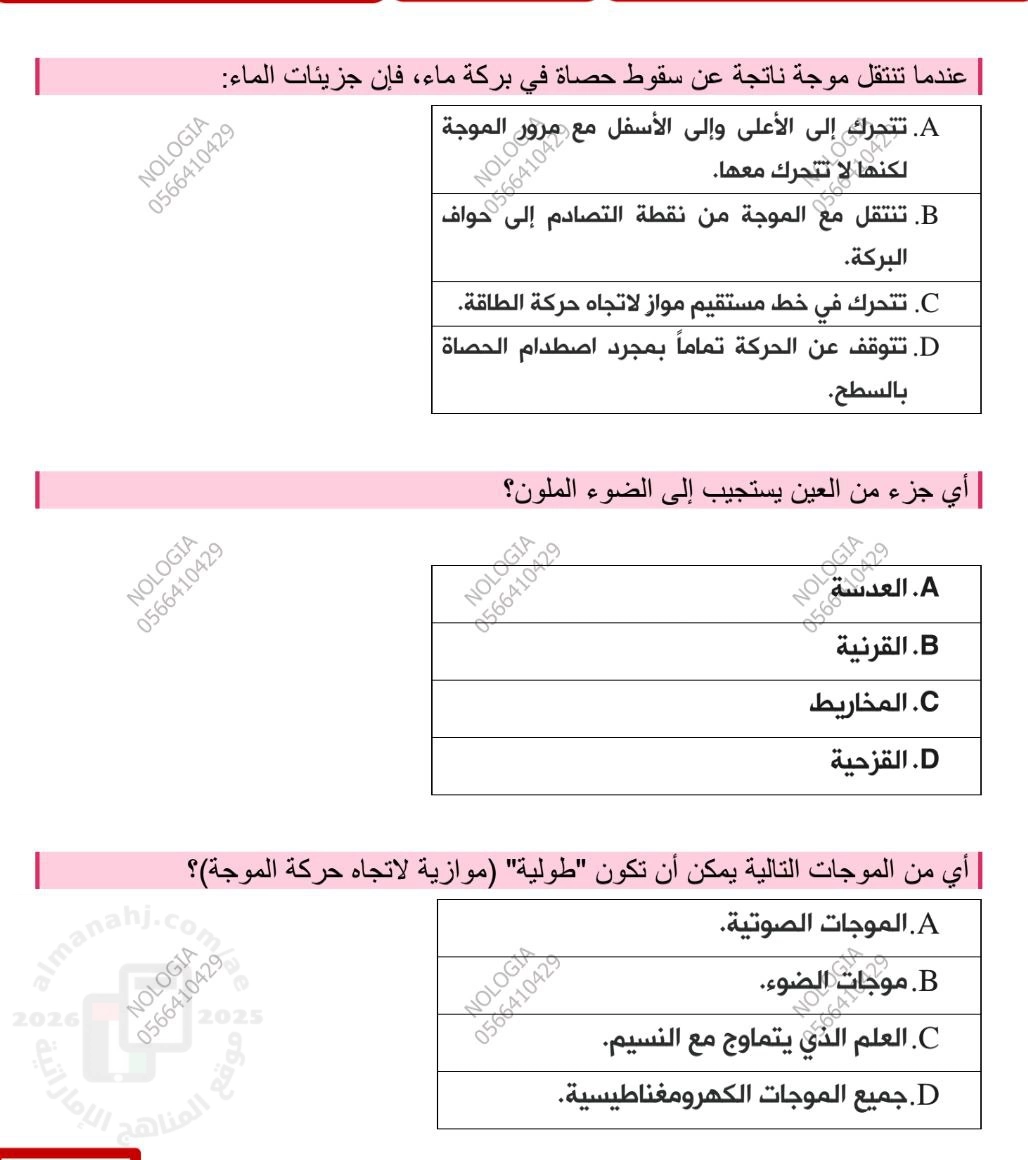 معلومات الملف: أسئلة اختبار الوحدة السادسة : الموجات و الصوت بدون الحل منهج بريدج Bridge | ||