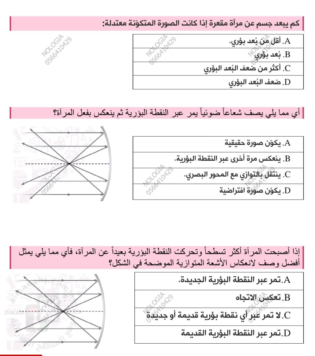 تم إيجاد الملف: أسئلة اختبار الوحدة الخامسة المرايا والعدسات