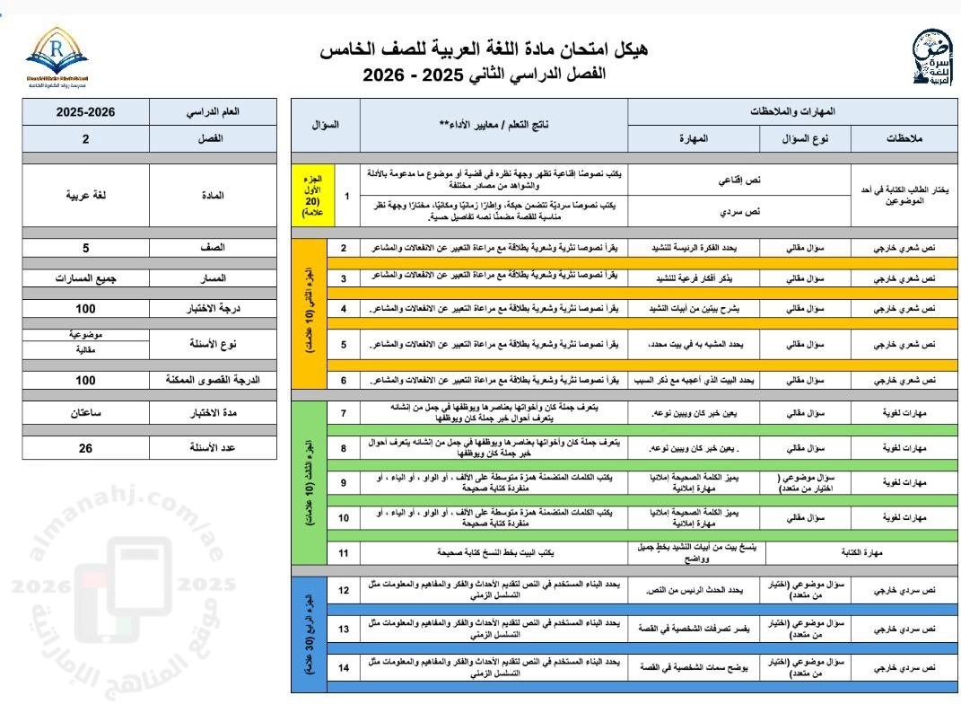 | السابق: مواصفات الاختبار النهائي للفصل الثاني (الهيكل الوزاري) المسار المتقدم | الملف الحالي: 38357 | أنت تتصفح الملف الأخير في الصف الخامس |