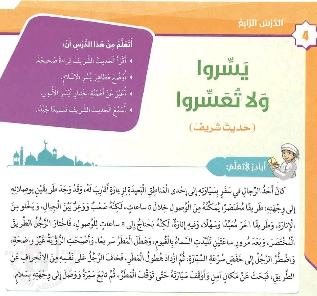 تم إيجاد الملف: حل الدرس الرابع يسروا ولاتعسروا