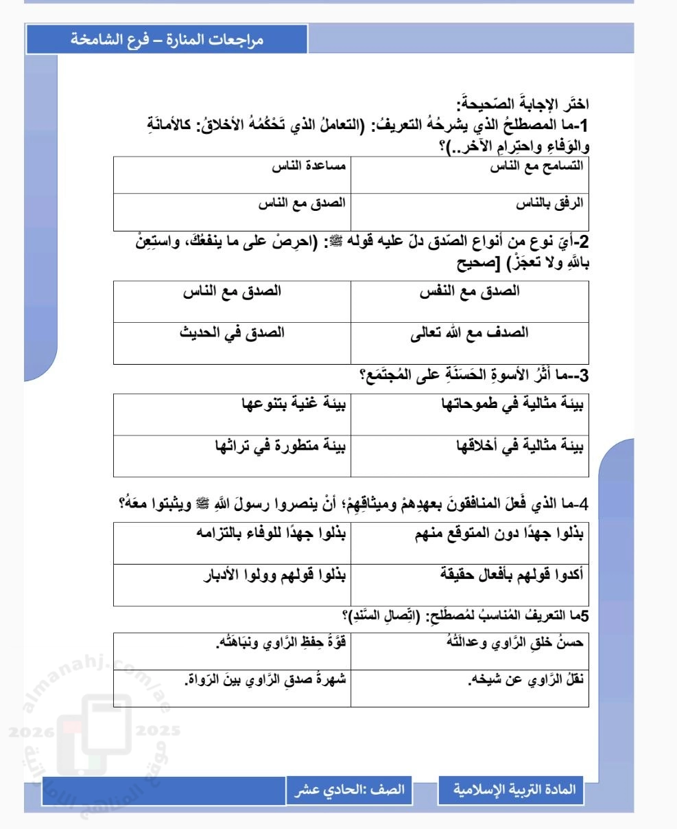| المادة: تربية اسلامية | ||