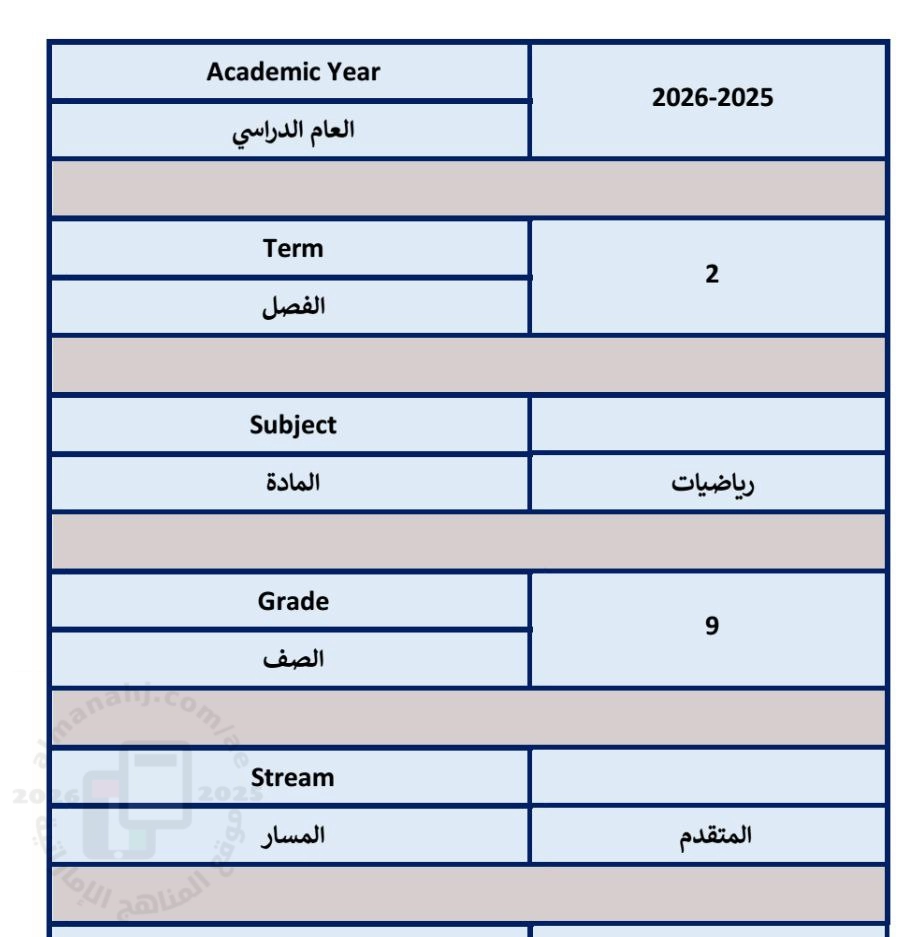 | هل تريد ملفات لمادة أخرى لقسم الصف التاسع المتقدم, الفصل الثاني ؟ اخترها |