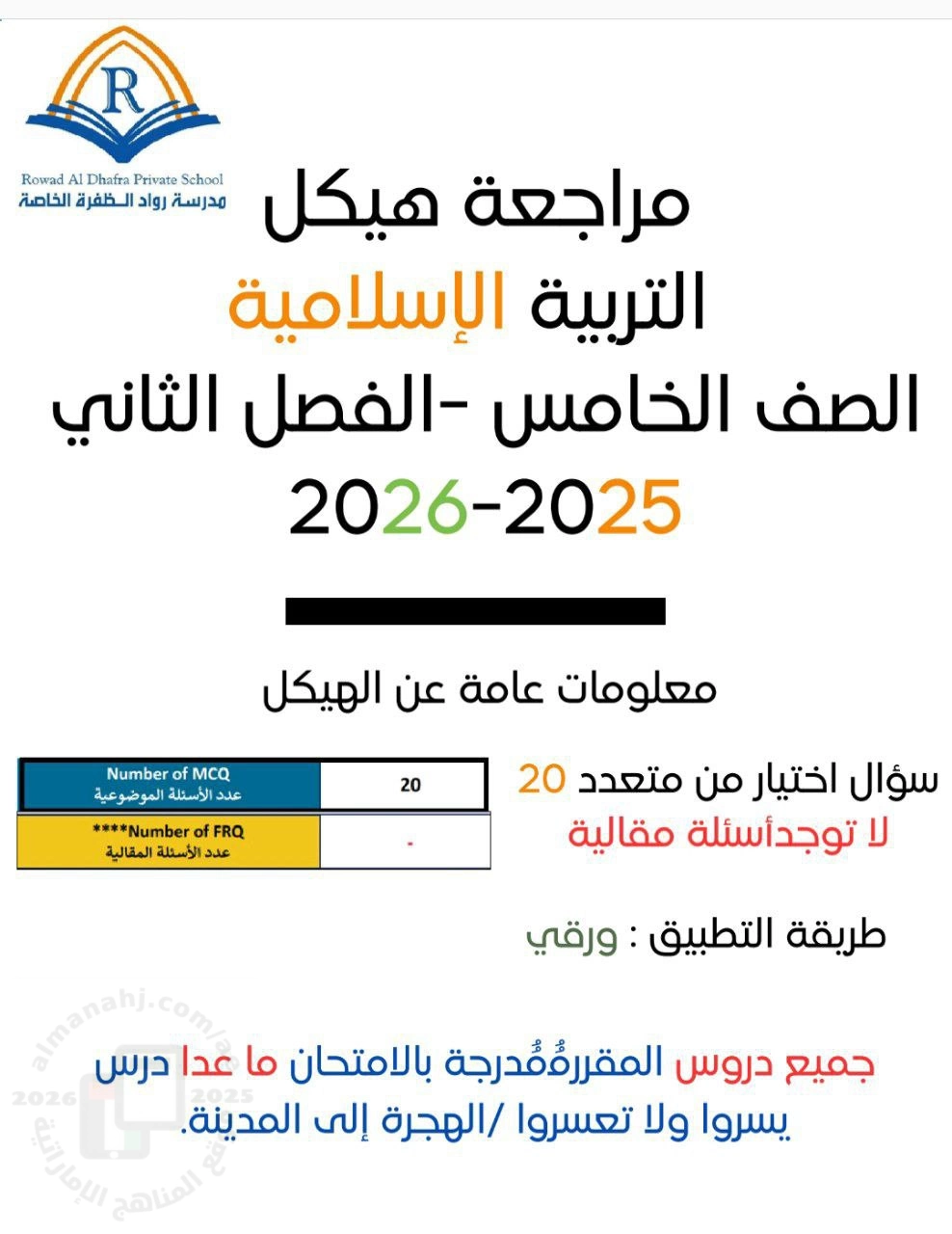 | مراجعة دروس الفصل وفق الهيكل الوزاري - إعداد: مدرسة رواد الظفرة الخاصة | ||