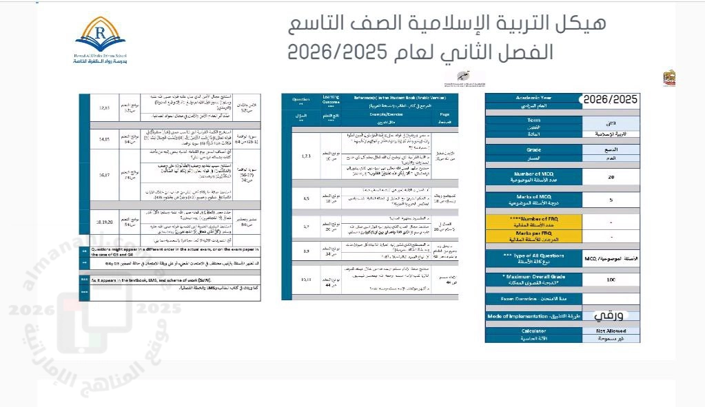 | 📌 الخطة الدراسية الرسمية المعتمدة للعام الدراسي 2025-2026 | |