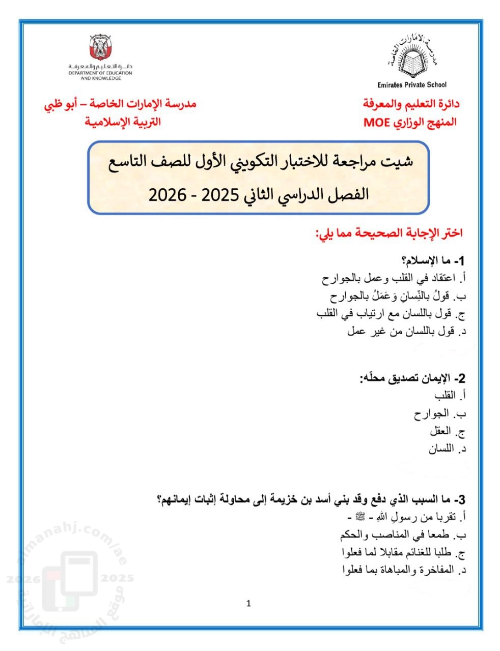 | أنت هنا: موقع المناهج ⇦ المناهج الإماراتية ⇦ الصف التاسع ⇦ تربية اسلامية ⇦ الفصل الثاني ⇦ أوراق عمل |