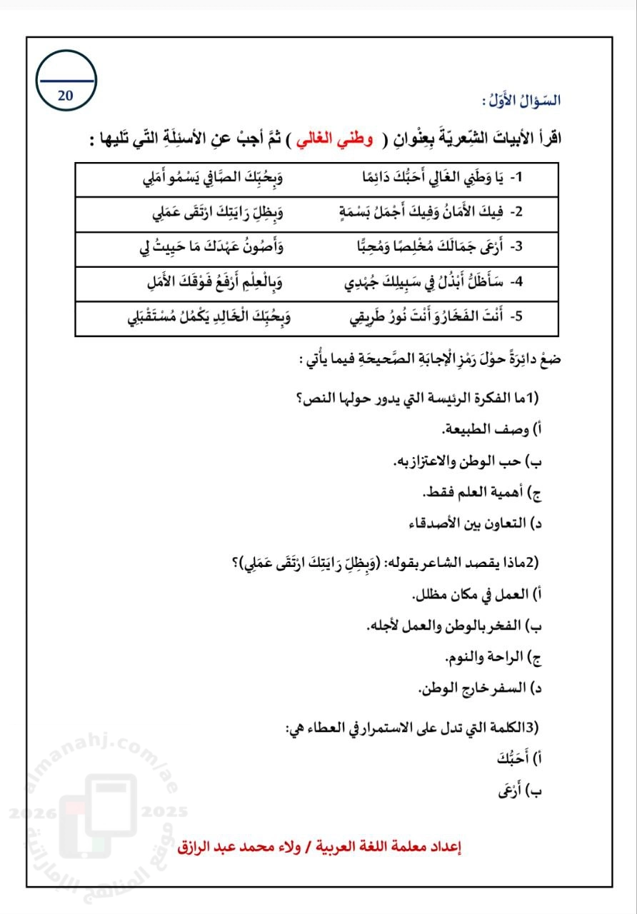 | تنويه: المناهج الإماراتية هو موقع مجاني وغير رسمي ولا يتطلب اشتراك لتحميل الملفات، لذلك يرجى عدم دفع أي مبلغ أو الاشتراك من أجل تحميل الملفات. | |