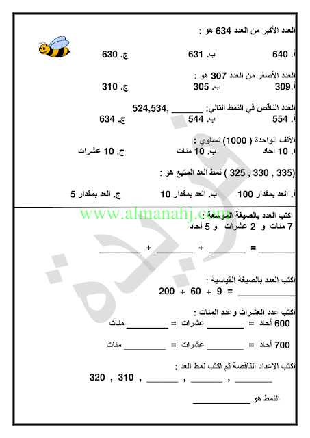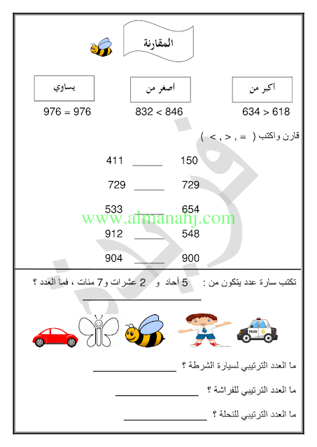 | اضغط هنا لتحميل وعرض ( ورقة عمل المقارنة وكتابة الأعداد ) | |||