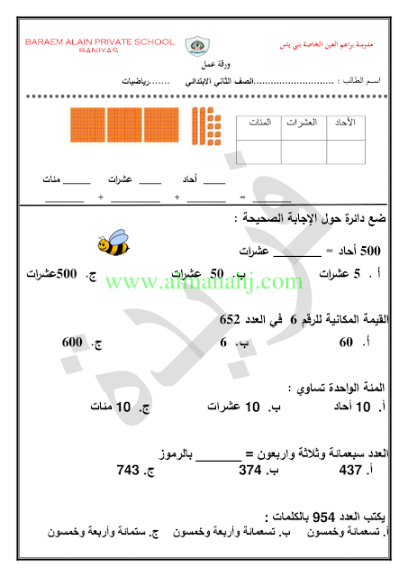 معلومات الملف: الصف الثاني, الفصل الثاني, رياضيات, 2017-2018, ورقة عمل المقارنة وكتابة الأعداد | |||