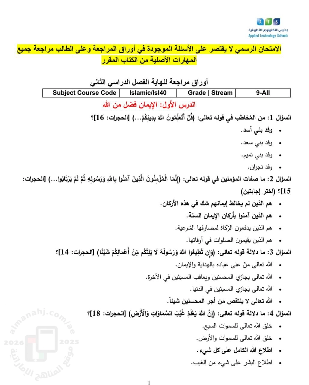 | تنويه: المناهج الإماراتية هو موقع مجاني وغير رسمي ولا يتطلب اشتراك لتحميل الملفات، لذلك يرجى عدم دفع أي مبلغ أو الاشتراك من أجل تحميل الملفات. | |