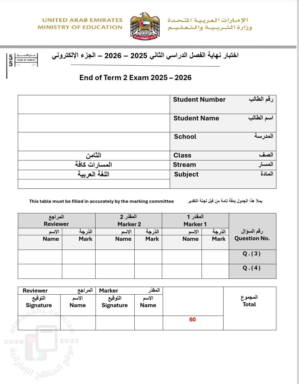 | السابق: غلاف اختبار نهاية الفصل الثاني القسم الورقي | الملف الحالي: 38517 | أنت تتصفح الملف الأخير في الصف الثامن |