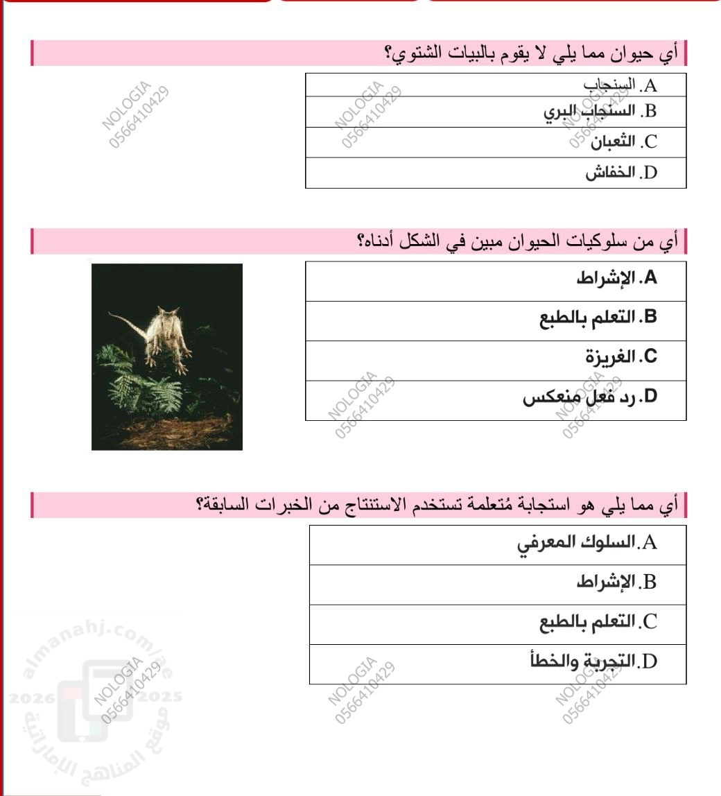 | أسئلة اختبار في الوحدة الثامنة سلوكيات الحيوانات وتكاثرها - إعداد: NOLOGIA | ||
