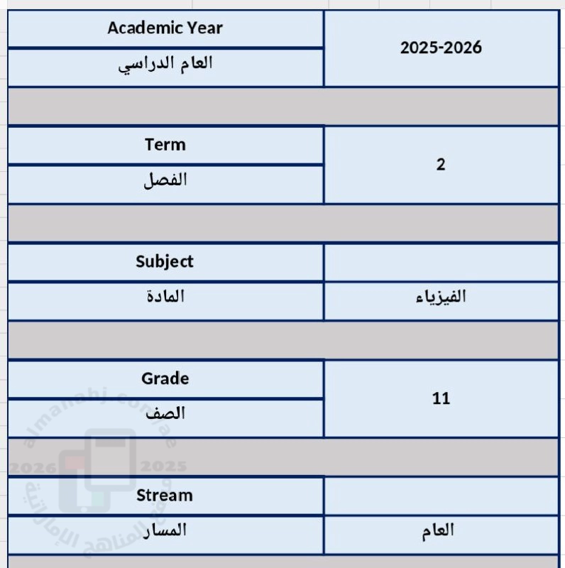 | هل تريد ملفات لمادة أخرى لقسم الصف الحادي عشر العام, الفصل الثاني ؟ اخترها |