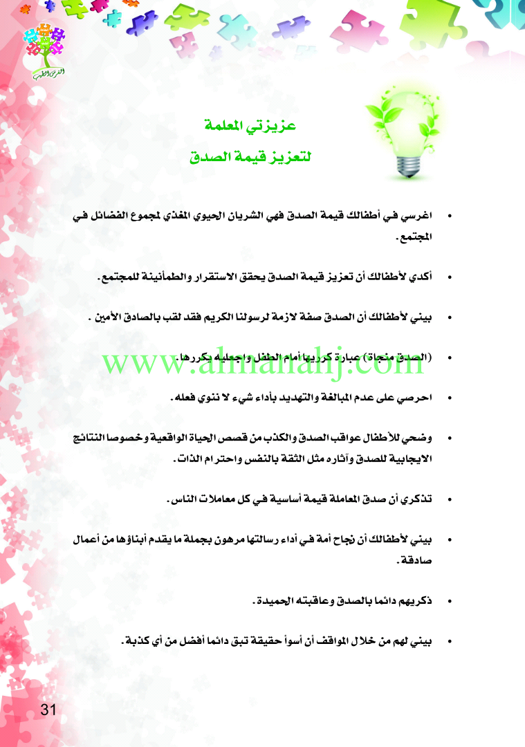 رابط تحميل وعرض ( مشروع القيم التربوية لمرحلة رياض الاطفال المستوى الاول الصدق ) | |||