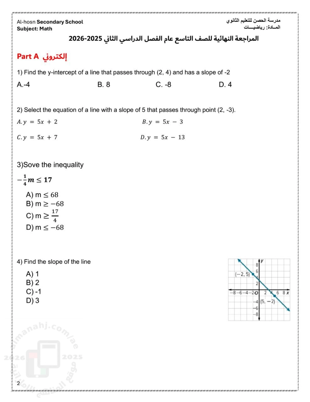 معلومات الملف: المراجعة النهائية في الرياضيات منهج ريفيل Reveal بدون الحل و تحتوي على أسئلة موضوعية - اختيار من متعدد | ||